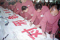 悔悟的法輪功練習(xí)者在“反對邪教、保障人權(quán)”百萬公眾簽名活動中,在百米長幅上簽下自己名字,以示與法輪功徹底決裂。