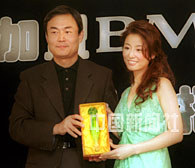 紅遍內(nèi)地、香港及臺灣的藝人林心如28日在香港、臺灣媒體的見證下,簽約成為BMG唱片公司旗下歌星,BMG唱片公司崔震東先生并向林心如贈(zèng)送一個(gè)琉璃如意,藉此祝福她的演藝事業(yè)更圓滿如意。中新社傳真 鄧慶樂 攝