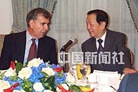 圖文:錢其琛與紐約主流媒體負(fù)責(zé)人共進(jìn)早餐 2001年3月20日 23:02 ![]() 錢其琛與時(shí)代華納首席執(zhí)行官萊文親切交談。作者:胡啟華 中新網(wǎng)紐約3月20日消息(記者 陳建)正在美國(guó)進(jìn)行訪問(wèn)的國(guó)務(wù)院副總理錢其琛,今天早晨在紐約與當(dāng)?shù)刂髁髅襟w負(fù)責(zé)人共進(jìn)早餐。圖為錢副總理正與美國(guó)在線—時(shí)代華納首席執(zhí)行官萊文親切交談。 |
