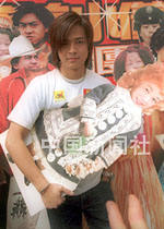 歌星陳曉東19日在香港出席「森美小儀歌劇團(tuán)」成立儀式,手抱小儀紙版公仔造型。中新社傳真 鄧慶樂(lè) 攝