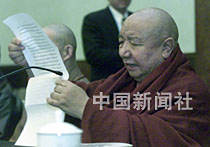 中國佛教協(xié)會(huì)副會(huì)長(zhǎng)、青海塔爾寺活佛卻西日前在北京出席宗教界反對(duì)“法輪功”邪教的座談會(huì),指出必須徹底揭露其丑惡面目。中新社記者 滿會(huì)喬 攝