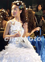 香港著名服裝設(shè)計(jì)師尹泰尉先生,一日晚在京舉行個(gè)人專場時(shí)裝發(fā)布會(huì),特邀參加此次展示的少女模特,為展示帶來青春浪漫的氣氛。中新社記者 錢興強(qiáng) 攝