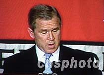 美國總統(tǒng)小布什日前在華盛頓首次表示遺憾,他是在出席活動時首先講話,對美國軍用偵察機(jī)撞毀中國戰(zhàn)機(jī),造成一名中國飛行員失蹤表示遺憾的態(tài)度。中新社圖