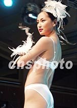 九日晚,在北京嘉里中心飯店舉行的“時(shí)尚大蓬車”內(nèi)衣時(shí)裝秀,吸引了來(lái)自京城各處的觀眾,著名內(nèi)衣品牌“黛安芬”展開(kāi)中國(guó)市場(chǎng)的大型推廣活動(dòng)。圖為名模趙俊模特展示內(nèi)衣新款作品。中新社記者 錢興強(qiáng) 攝
