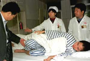 圖文:昔日跳樓“護(hù)法” 如今重獲新生 2001年4月11日 14:26 ![]() 因跳樓造成四肢、腰椎骨折的高州市“法輪功”輔導(dǎo)站站長劉冰,在高州市人民醫(yī)院醫(yī)護(hù)人員的精心救治下,身體恢復(fù)很快,已無終生殘疾危險。(周文杰 攝) 中新網(wǎng)高州四月十一日消息:廣東省高州市一批“法輪功”癡迷者近日在當(dāng)?shù)卣汀胺ㄝ喒Α鞭D(zhuǎn)化人員的幫教下,終于迷途知返,重獲新生。 2000年12月,劉冰、伍文瓊等13名法輪功癡迷者在北京跳樓“護(hù)法”,造成1死4重傷的慘劇。高州市委市政府將他們接回后,結(jié)合當(dāng)?shù)厍闆r展開了一場全社會共同參與的挽救行動。到目前為止,全市包括他們在內(nèi)的140名“法輪功”癡迷者中,已有86%得到轉(zhuǎn)化。(據(jù)新華社) |