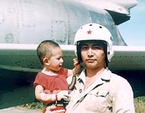 中國飛行員王偉與愛子在自己的飛機前留影。(資料圖片)作者:龍運河