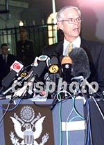 美國駐華大使普理赫十一日晚在北京就美國關(guān)于撞擊事件的致歉信接受中外記者采訪。中新社記者 滿會喬 攝