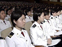 中國海軍女兵與解放軍四總部官兵代表兩千余人,二十四日在北京參加中央軍委授予王偉烈士“海空衛(wèi)士”榮譽稱號命名大會。