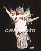 組圖:芭蕾舞《大紅燈籠高高掛》在京亮相 2001年4月27日 15:46 ![]() 倍受關注的芭蕾舞劇《大紅燈籠高高掛》二十六日晚在北京天橋劇場首次彩排。圖為國家一級演員朱研主演的“三姨太”與武生趙云(扮演者孫杰)相愛一幕。中新社圖 史利 攝