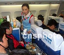 圖:西藏空姐為乘客服務(wù)