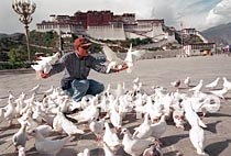 圖:布達(dá)拉宮廣場上的信鴿 2001年5月9日 19:36 ![]() 西藏拉薩市布達(dá)拉宮廣場上,新從內(nèi)地引進(jìn)數(shù)百羽雪白的信鴿與市民及游客作伴、嬉戲。成為市區(qū)一新景觀。中新社記者 鄒憲 攝