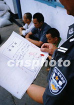 廣東廉江市公安局近日展開行動嚴(yán)厲打擊粵桂交界地區(qū)的非法制造、買賣爆炸物品違法活動。共搗毀非法買賣炸藥窩點四個,抓獲犯罪嫌疑人十二人,收繳一批爆炸物品。圖為警方抓獲非法買賣爆炸物的犯罪嫌疑人。中新社圖 陳祥勝 攝