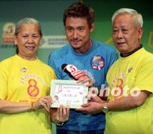 歌星張學友18日在香港出席粵港澳耆英饑饉8小時壓軸節(jié)目「香江暖流獻中華音樂會」,頒贈紀念品予出席長者。中新社傳真鄧慶樂攝