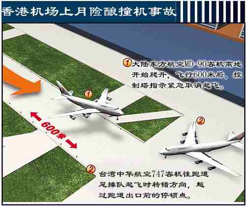 圖文:臺灣客機香港機場入錯道險撞大陸客機 2001年06月01日 10:22 ![]() 中新網(wǎng)香港6月1日消息:上個月二十三日,香港新機場險些發(fā)生撞機意外。臺灣中華航空一架正在跑道滑行的波音747-200飛機,誤闖跑道保護區(qū),差點與當(dāng)時正在跑道加速起飛的大陸東方航空MD-90客機碰撞。香港民航處控制塔職員發(fā)覺,立即通知東航客機緊急煞停,及時化解一場危機。 香港民航處官員昨天指出,這場意外沒有人受傷,但是民航處已要求臺華航提出解釋。 據(jù)報道,這架東航編號MU512號客機原預(yù)定飛往寧波,當(dāng)時在機場南跑道已高速滑行六百米,準(zhǔn)備起飛;機師突然接獲控制塔通知,有一架華航客機的機頭相當(dāng)接近跑道末端,要求東航客機緊急煞停。 東航客機煞停后,駛?cè)牖械溃匦碌群蚱痫w。華航客機也被命令離開跑道支路,沿滑行道前行至跑道尾端,等待起飛。 雖然事件沒有乘客受傷,但東航機上乘客表示,當(dāng)飛機緊急煞停時,機內(nèi)情況非;靵y,乘客尖叫,但幸好所有乘客都綁上安全帶,沒有人被拋出座位,只是有不少乘客在座位上向前沖。 編號CI641的臺灣華航客機,機上載有202名乘客,預(yù)定飛往曼谷。事發(fā)時,華航客機正在跑道末端的滑行道“排隊”等候駛?cè)肱艿溃坏驒C頭轉(zhuǎn)錯方向,面向跑道。 香港民航處發(fā)言人承認(rèn),華航客機因轉(zhuǎn)錯方向,超越跑道的停頓點(跑道與滑行道之間的緩沖區(qū));而跑道另一端有一架東航客機駛近,控制塔人員為安全計,要求東航客機緊急煞停。 香港民航處發(fā)言人強調(diào),即使華航客機機頭超越停頓點,過于接近跑道,但與跑道仍有七十公尺距離,與東航客機逾三千公尺距離;而東航客機屬較小型飛機,毋須滑行到跑道末端才起飛,就算控制塔不采取行動,也不會出現(xiàn)兩架客機碰撞的意外?刂扑蟾咚倩械娘w機取消起飛程序,是正常的預(yù)防事故措施。 民航處發(fā)言人表示,此次華航客機機頭超越跑道停頓點事件,過去很少發(fā)生;而塔臺人員并未向華航客機機師發(fā)出不正確指示,民航處已要求有關(guān)航空公司提交書面解釋。中華航空及東方航空公司香港辦事處均拒絕對事件評論,東方航空也拒絕透露客機上的乘客人數(shù)。據(jù)悉,當(dāng)天東航使用的MD─90客機,可載客175人。