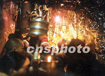 藏歷四月到拉薩大昭寺內(nèi)的釋迦牟尼佛像前頂禮膜拜的藏民人如潮涌。藏歷四月是藏族著名的“轉(zhuǎn)經(jīng)節(jié)”,據(jù)說(shuō)是佛主誕生、圓寂、成佛和文成公主進(jìn)藏的日子。中新社記者 滿會(huì)喬 攝