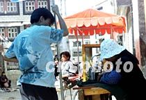 西藏拉薩的一位時髦青年正在八廓街上等著裁縫為他縫制衣服。如今身著時髦現(xiàn)代服裝的年輕人在拉薩街頭比比皆是。中新社記者 滿會喬 攝