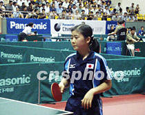 2001中國乒乓球大獎賽六月六日至九日在海口舉行。本次大獎賽年齡最小的運(yùn)動員是日本運(yùn)動員福原愛,年僅十二歲。她在七日的第二輪比賽中以一比三負(fù)于中國的白楊。中新社圖 莫成雄 攝