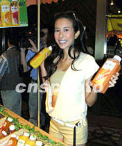 影視歌三棲藝員莫文蔚六月十三日在上海與頂新國際集團(tuán)簽約,作為其新鮮純果汁“每日C”的形象代言人。據(jù)悉該果汁以新鮮為生命,這也正是莫文蔚所欣賞的。中新社記者 潘索菲 攝