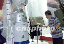 圖:“神舟”飛船模型亮相建黨圖片展 2001年06月18日 17:08 ![]() 一九九九年飛行試驗取得圓滿成功的“神舟”飛船模型即將在20日開幕的中共建黨80周年圖片展亮相。中國第一艘無人太空船“神舟號”試飛成功是中國航天史上一項重要的里程碑,同時也標志著中國將進入載人航天時代。中新社記者 滿會喬 攝