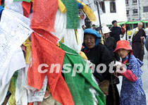 圖;拉薩街頭轉(zhuǎn)經(jīng)朝圣的祖孫 2001年06月22日 11:07 ![]() 西藏拉薩每天圍繞大昭寺轉(zhuǎn)經(jīng)朝圣的藏民絡(luò)繹不絕,一位藏族老奶奶帶著身穿漂亮衣服的孫女走在轉(zhuǎn)經(jīng)的行列中。中新社記者 滿會喬 攝