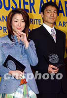 ![]() 香港演星劉德華29日在香港繽紛荷里活餐廳領(lǐng)取2001年港臺最受歡迎男演員獎項時,接受影迷贈送的祝賀禮物。中新社記者 洪少葵 攝 ![]() 百視達公司主辦的“2001年港臺最受歡迎的男女演員”頒獎禮,29日在香港繽紛荷里活餐廳舉行,主辦機構(gòu)將獎項頒發(fā)予臺灣與香港觀眾投票選出的男女演員得獎?wù)邉⒌氯A、鄭秀文。中新社記者 洪少葵 攝