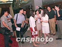 圖:中外媒體記者在北京采訪中日貿易磋商 2001年07月03日 19:17 ![]() 在北京的中外媒體記者三日下午在中國外經貿部談判大樓采訪“中日貿易磨擦問題正式磋商”。中新社記者 鄒憲 攝