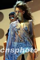 香港10日舉辦「香港時(shí)裝節(jié)春夏系列2002」時(shí)裝表演,模特展示設(shè)計(jì)師最新服飾,盡顯美態(tài)。中新社圖 洪少葵 攝