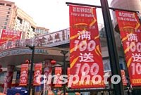 北京申辦2008年奧運(yùn)獲勝后,一些商家抓住機(jī)會(huì)紛紛推出各種形式的促銷(xiāo)活動(dòng),給狂喜中的人們一份新的驚喜。中新社記者 毛建軍 攝