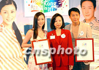 香港旅游發(fā)展局16日在赤柱美利樓委任香港演藝界紅星黎明及李嘉欣為“動感之都:就是香港!”大使,推廣香港旅游業(yè)。中新社傳真 洪少葵 攝