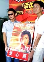 多圖:謝霆鋒巡回演唱風(fēng)下周刮到上海 2001年07月20日 15:47 ![]() 香港歌手謝霆鋒七月十九日在上海為其演唱會做前期推廣!翱煽诳蓸分x霆鋒活出真精彩2001中國巡回演唱會”將于七月二十八日在可容納八萬人的上海體育場舉行。謝霆鋒希望屆時更多的歌迷能了解他、接近他。中新社記者 潘索菲 攝 ![]() 新天王謝霆鋒十九日在上海向上海慈善基金會慈善助學(xué)的受助學(xué)生代表贈送本月二十八日在此間舉行的“可口可樂謝霆鋒活出真精彩演唱會”的門票。中新社記者 潘索菲 攝