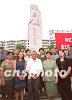 圖文:“海空衛(wèi)士”王偉的塑像在浙江湖州落成 2001年08月02日 06:19 ![]() 中國“?招l(wèi)士”王偉塑像落成典禮八月一日在浙江省湖州市鳳凰公園廣場舉行,由花崗巖制作的王偉塑像高10米、寬2.2米、厚2.3米、重約80噸,采用的是南京藝術(shù)學院青年教師、著名雕塑家李廣玉構(gòu)思的設(shè)計方案。中新社圖 張全躍 攝 ![]() 中國“?招l(wèi)士”王偉塑像落成典禮八月一日在浙江省湖州市鳳凰公園廣場舉行,王偉父母王明、王月琴(中)、妻子阮國琴(右)、姐姐(右四)等親屬與近千名各界群眾和當?shù)伛v軍官兵參加了儀式并合影留念。中新社圖 張全躍 攝