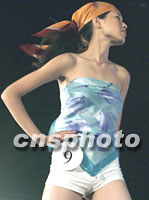 圖:世界精英模特絲巾創(chuàng)意設(shè)計(jì)展示 2001年08月10日 11:27 ![]() 戴安娜2001世界精英模特大賽中國預(yù)選賽暨金沙灘模特大賽十日在青島舉行。圖為選手進(jìn)行絲巾創(chuàng)意設(shè)計(jì)比賽。中新社記者 錢興強(qiáng) 攝