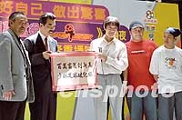 圖:周星馳出席《百萬富翁少林足球慈善夜》記者會 2001年08月11日 20:45 ![]() 亞視行政總裁封小平(右二)與周星馳等人出席儀式,周星馳將聯(lián)同《少林足球》演員于20日踏上「百萬大道」,爭取百萬善款,該晚贏得之所有獎金,將全數(shù)撥捐瑪麗醫(yī)院癌病兒童。中新社圖 吳智仁 攝