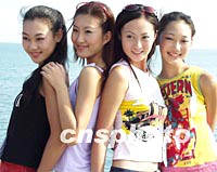 戴安娜2001世界精英模特大賽中國預(yù)選賽暨金沙灘模特大賽十二日在青島金沙灘進行外外景拍攝。圖為青春亮麗的模特新秀。中新社記者 錢興強 攝