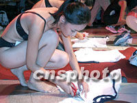 圖:模特大賽自創(chuàng)時(shí)裝 2001年08月14日 11:05 ![]() 在青島舉行的戴安娜2001世界精英模特大賽中國預(yù)選賽暨金沙灘模特大賽,日前舉行參賽選手自行設(shè)計(jì)剪裁服裝比賽。圖為參賽選手全神貫注的進(jìn)行創(chuàng)意剪裁。中新社記者 錢興強(qiáng) 攝