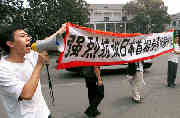 圖文:清華學(xué)子到日本駐華使館抗議小泉參拜 2001年08月15日 16:39 ![]() 法新/圖 ![]() 法新/圖 ![]() 路透/圖 中新網(wǎng)北京8月15日消息:今天上午,約30名清華大學(xué)學(xué)子向日本駐華大使館遞交了抗議書,對(duì)日本首相小泉純一郎13日參拜靖國(guó)神社一事表示強(qiáng)烈的憤慨。今天是抗戰(zhàn)勝利日本投降五十六周年紀(jì)念日。 目擊者說,約有三十多名清華大學(xué)學(xué)生在日本大使館門前打出“打倒日本帝國(guó)主義”的橫幅標(biāo)語(yǔ),高唱愛國(guó)主義歌曲。 一名不愿透露姓名的女學(xué)生高聲宣讀了抗議書:“我們強(qiáng)烈要求日本政府向中國(guó)以及其他受過日本侵略的亞洲人民做出正式道歉!” 據(jù)中國(guó)日?qǐng)?bào)網(wǎng)站報(bào)道,這些學(xué)生在日本大使館外一邊揮舞著沒有任何記號(hào)的空白卡片,一邊高呼“打倒日本帝國(guó)主義!”“中國(guó)人民萬歲!”“你們(日本)再也不可能欺凌中國(guó)了!” 一名姓劉的學(xué)生說:“這些空白卡就意味著:對(duì)于日本政府的胡說八道,我們覺得沒有什么好說的,他們不值得我們跟他們說話! 目擊者表示,抗議活動(dòng)克制、有序。守衛(wèi)大使館的警察說,根據(jù)交通規(guī)則他們可以停留十分鐘。 整個(gè)示威活動(dòng)大約進(jìn)行了十五分鐘,隨后,示威學(xué)生乘坐汽車離開了日本大使館。 |