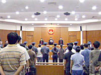 組圖:“法輪功”天安門自焚事件制造者被審判 2001年08月17日 20:47 ![]() 北京市第一中級人民法院十七日對今年一月二十三日制造天安門廣場自焚事件的五名“法輪功”涉案人進行了一審公開宣判。 ![]() 十七日上午,北京市第一中級人民法院對五名制造天安門廣場自焚事件的“法輪功”癡迷者進行一審判決,以故意殺人罪判處劉云芳無期徒刑、剝奪政治權(quán)利終身。