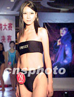 組圖:新絲路中國(guó)模特大賽新疆區(qū)選拔賽開賽 2001年08月20日 15:29 ![]() “2001年新絲路中國(guó)模特大賽‘軒妮杯’新疆區(qū)選拔賽”十九日在烏魯木齊市舉行。本次比賽共有來自新疆各地的90名女選手、64名男選手參加。圖為參賽選手進(jìn)行便裝展示。中新社圖 劉新 攝 ![]() “2001年新絲路中國(guó)模特大賽‘軒妮杯’新疆區(qū)選拔賽”十九日在烏魯木齊市舉行。本次比賽共有來自新疆的90名女選手、64名男選手參加。圖為參賽選手進(jìn)行泳裝展示。中新社圖 劉新 攝