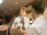 ![]() APEC2001年第三次高官會相關(guān)會議八月二十一日繼續(xù)在遼寧大連舉行,與會代表在會場外交流意見。中新社記者 滿會喬 攝 ![]() APEC2001年第三次高官會相關(guān)會議八月二十一日繼續(xù)在遼寧大連舉行,澳大利亞貿(mào)易官員白儒石接受記者采訪。中新社記者 滿會喬 攝