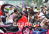 圖:廣州名車展靚女來助陣 2001年08月27日 11:08 ![]() 二00一廣州名車展八月在廣州天河體育中心揭幕,主辦單位不但請來靚女助陣,并舉行了香車美人攝影大賽,吸引了不少市民前往參觀和拍攝。中新社圖 梁永強 攝 |
