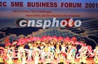 ![]() 包括中國在內的APEC成員體中小企業(yè)家約六百人參加二十七日在上海開幕的APEC中小企業(yè)工商論壇。圖為開幕式上的歌舞表演。中新社記者 潘索菲 攝
