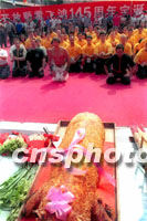 中新社佛山八月二十七日電(記者辛述之)今天是中國武林奇人黃飛鴻一百四十五周年誕辰,來自美國東、西部海外黃飛鴻門人尋根團(tuán)一行近百人,上午來到廣東佛山黃飛鴻紀(jì)念館,舉行拜師盛會(huì)并進(jìn)行武術(shù)表演。 晚清時(shí)期一代武術(shù)宗師黃飛鴻,一八五六年八月二十七日誕生于佛山。黃飛鴻武藝超凡,其富有傳奇色彩的故事,曾被拍成百余部電影在海外廣為流傳,其英名不但在國人心里扎根,而且還受到許多外國人的仰慕。 黃飛鴻門下弟子眾多,遍布粵港澳、東南亞乃至美加、歐洲等地。在人們心中,他已成為一個(gè)行俠仗義、扶危濟(jì)困,具有中華傳統(tǒng)美德的藝術(shù)形象而家喻戶曉。 今天,適逢座落于佛山祖廟的黃飛鴻紀(jì)念館全面開放,粵港澳武術(shù)界有關(guān)人員結(jié)伴前來,參加紀(jì)念盛會(huì)。上午九時(shí),參加過國慶五十周年慶典的二十頭醒獅起舞迎賓,黃飛鴻的傳人、著名武術(shù)家趙志凌、余志偉等為黃飛鴻紀(jì)念館醒獅點(diǎn)睛,并帶領(lǐng)來自美國東、西部的近百名黃飛鴻門人,按照傳統(tǒng)武林習(xí)俗拜祭祖師黃飛鴻。 隨后,進(jìn)行了大型群鼓表演、舞龍表演和舞獅表演。余志偉、趙志凌及其洋弟子相繼表演了精彩的黃飛鴻拳術(shù),其不凡的身手和高超的武藝,博得觀眾高聲喝彩和陣陣掌聲。 據(jù)了解,黃飛鴻紀(jì)念館今后將每年舉辦世界黃飛鴻門人大聯(lián)誼,還將舉辦國際洪拳大賽,黃飛鴻、霍元甲南北大俠國際武術(shù)邀請(qǐng)賽等活動(dòng)。(完) |