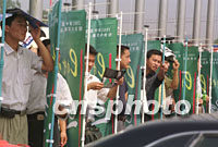 圖:西安市民頂烈日觀看貿(mào)洽會 2001年09月05日 18:35 ![]() 西安市民五日在烈日下靠廣告牌遮陽觀看貿(mào)易洽談會開幕式,等待進入展廳。本屆展會上的現(xiàn)代化民用產(chǎn)品吸引了眾多參觀者。中新社記者 宋吉河 攝