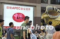 圖:上海大力營造APEC氛圍 2001年09月07日 11:11 ![]() 為迎接今秋十月在上海召開的APEC會(huì)議,上海正大力營造APEC氛圍,繁華街道淮海路上的廣告牌非常引人注目。中新社記者 潘索菲 攝 |