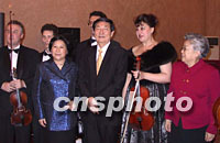 ![]() 正在俄羅斯訪問(wèn)的中國(guó)總理朱镕基和夫人勞安,九月九日晚在中國(guó)駐俄羅斯大使館與俄羅斯演員合影留念。中新社記者 孟慶雷 攝