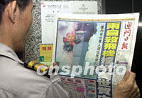 圖:澳門市民關(guān)注美國被襲事件 2001年09月12日 22:25 ![]() 美國發(fā)生的恐怖爆炸事件成為澳門各媒體的頭條新聞,圖為一位市民邊等電梯邊閱讀報紙。中新社圖 宗金柱 攝
