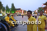 圖:黃包車夫夫子廟迎接華商大會代表 2001年09月17日 22:42 ![]() 舊式裝扮的黃包車夫十七日晚在南京夫子廟迎候來游覽的第六屆華商大會代表。中新社記者 李剛 攝 |
