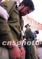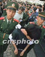 ![]() 孫海翔等七名搶劫、盜竊犯罪嫌疑人,二十日被北京西城警方公開逮捕。這是該局重點打擊盜竊搶劫、敲詐勒索、制假販假、欺行霸市等違法犯罪的一次專項行動。中新社記者 宋吉河 攝
