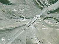 圖文:美國衛(wèi)星照片公開拉登在阿富汗訓(xùn)練營地 2001年09月27日 16:54 衛(wèi)星照片示意地圖 營地內(nèi)的秘密隧道入口 所指處懷疑為營地內(nèi)直升機(jī)停機(jī)坪 塔利班控制區(qū)的訓(xùn)練營地 訓(xùn)練營地內(nèi)的隊(duì)員在行軍 中新網(wǎng)香港9月27日消息:美國非政府組織一家軍事網(wǎng)站,公開間諜衛(wèi)星所拍攝到的多張照片,顯示了本·拉登在阿富汗的訓(xùn)練營地。 這些營地就在阿富汗東部城市賈拉拉巴德附近的達(dá)倫特地區(qū),照片清楚顯示恐怖分子的營地及掩護(hù)體,甚至有直升機(jī)起落坪。 |