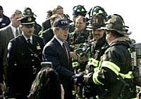 圖:布什訪問紐約 慰問消防隊(duì)員 2001年10月04日 11:07 ![]() 美國總統(tǒng)布什三日清晨來到紐約。他一下飛機(jī),就頭戴印有“紐約市消防局”字樣的棒球帽,和參加救援與清理工作的人們握手!熬乓灰弧笨植酪u擊案三周來,布什現(xiàn)已兩次訪問紐約。 |